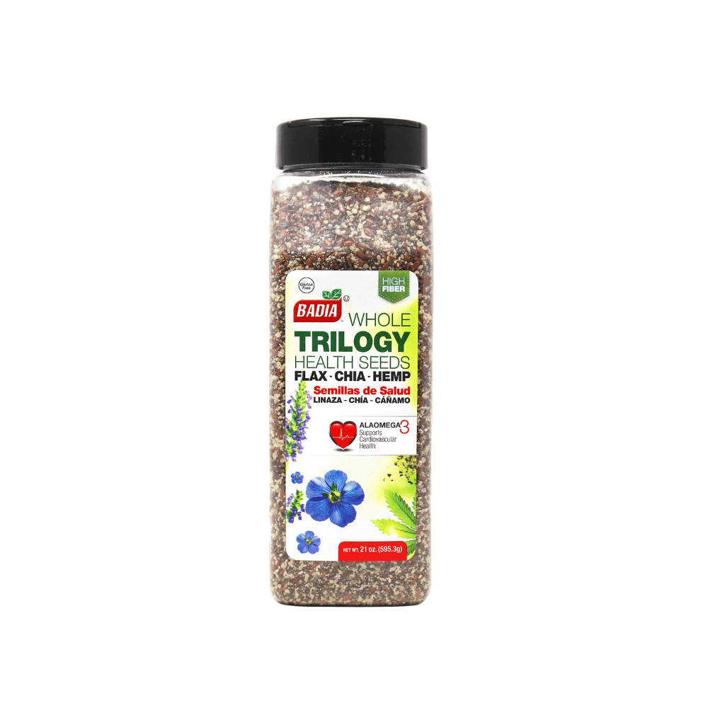 Experience a nutritious blend of chia, flax, and hemp with Badia Trilogy Health Seed. Perfectly balanced to provide protein, fibre, and essential omega fatty acids. Ideal for smoothies, baking, cereals, yoghurt, or healthy bowls. A convenient, ready-to-use mix designed for everyday wellness.